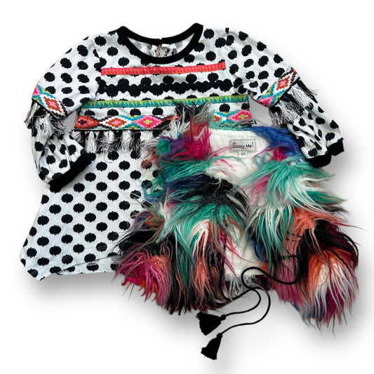 Sassy Me Girls 2T Colorful Two Piece Faux Fur Sweater and Polka Dot Tassel Top