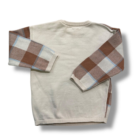 Boys H&M Size 3T Beige & Cream Plaid Button Shoulder Knit Sweater