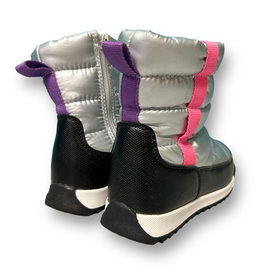 Girls Snow Boots Size 10 Kids Silver Pink and Purple with Side Zippers