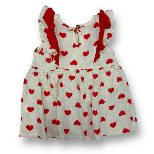 Girls Size 12 Months Red Heart Print Flutter Sleeve Dress with Bows and Buttons