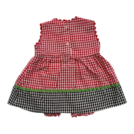 Girls Mon Petit Size 3-6 Months Red & Black Checkered Embroidered Dress Bloomers
