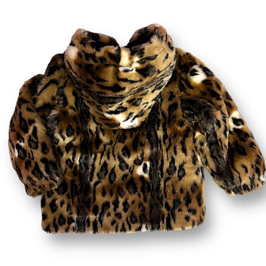 Girls Size 4T Soft Faux Fur Leopard Print Brown and Black Coat with Hood