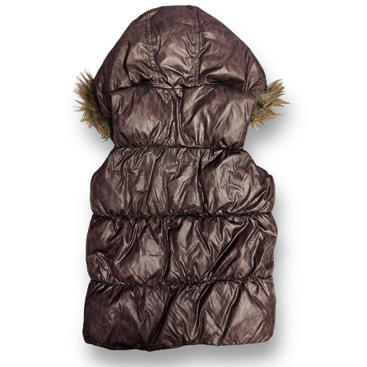 Gap Kids Girls Size 8/10 Medium Brown Puffer Vest with Faux Fur Lined Hood