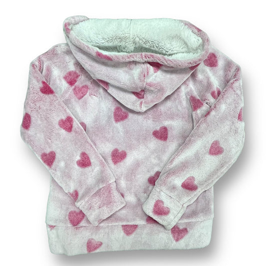 Girls Size 7/8 Velour Sweatshirt Pink Heart Print Sherpa Lined Pullover Hoodie