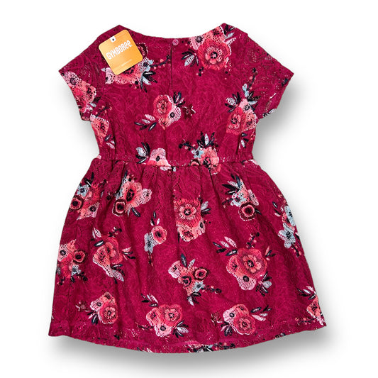 NEW! Girls Gymboree Size 6 Dark Pink Floral Lacey Short Sleeve Dress