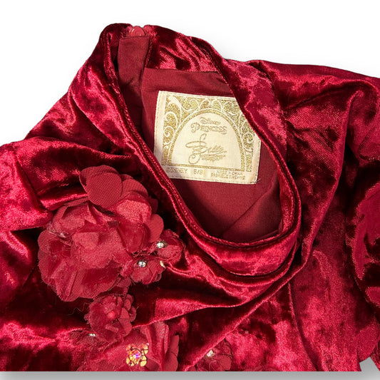 Disney Princess Belle Girls Size 5/6 Red Crushed Velvet Elegant Dress
