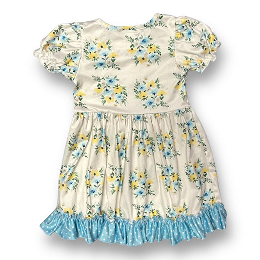 NEW! Girl Size 5 Boutique Dress Floral Print Button Accent Soft Knit Twirl Dress