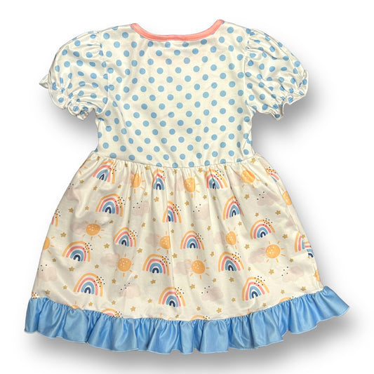 NEW! Girls Boutique Dress Size 4 Polka Dot & Rainbows Soft Ruffled Twirl Dress