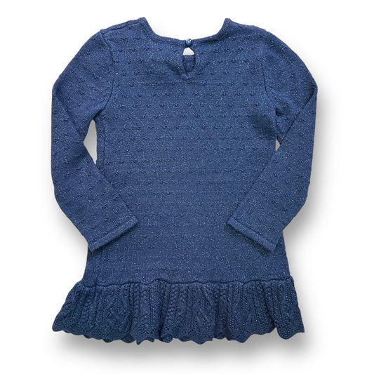 Girls Size 4T Dark Blue Shimmery Sweater Dress with Bow and Ruffles
