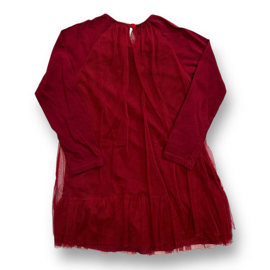 Eliane et Lena Girl Boutique Dress Size 4 Red Long Sleeve with Tulle Overlay