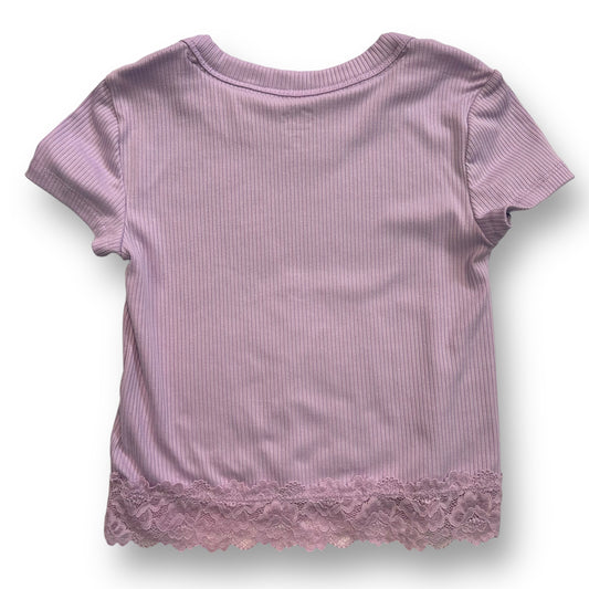 Girls Size 5/6 Soft Knit Purple Top Ribbed Short Sleeve Shirt with Lace Hem