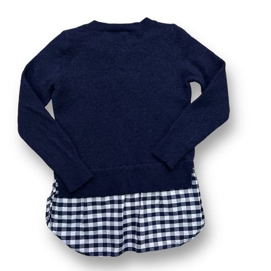 Crewcuts Girls Size 4/5 Navy Sweater with Checkered Blouse Layered Hem