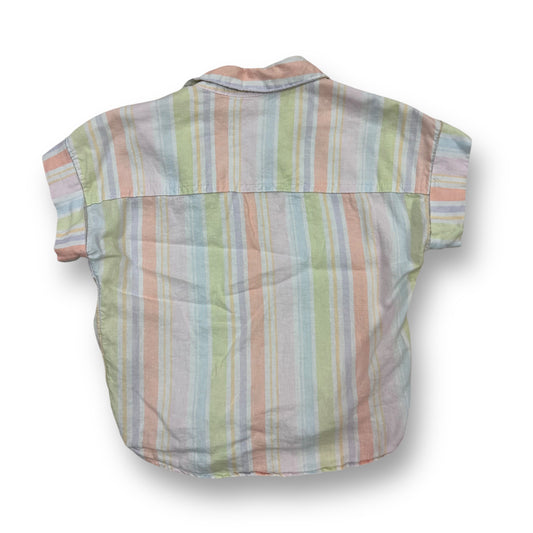 Girls Size 4/5 Pastel Tie-Front Short Sleeve Button Up Blouse with Pocket