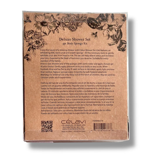Celavi Deluxe Shower Exfoliating Mitt, Body Sponge, and Scrub 3Pc Bath Gift Set