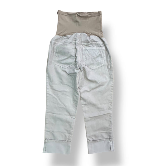 Small White Cotton Maternity Shorts Size 4/6 Elastic Waist Cuffed Capris