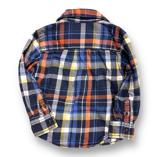 Carter's Boys Size 2T Orange and Navy Plaid Soft Knit Button Up Shirt