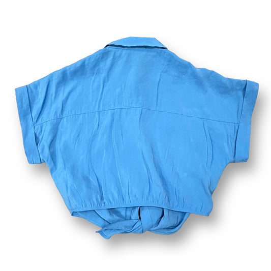 Zara Girls Size 14 Youth Country Blue Tie-Front Cropped Button Up Top