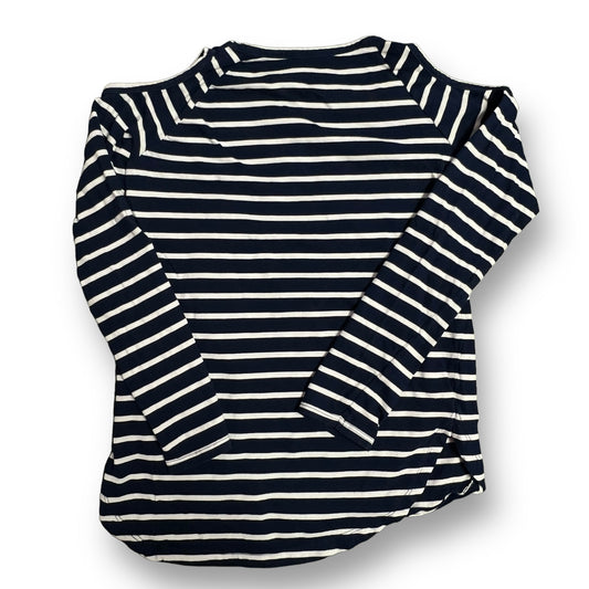 OshKosh Size 10/12 Youth Girls Navy Striped Peace Long Sleeve Cold Shoulder Top