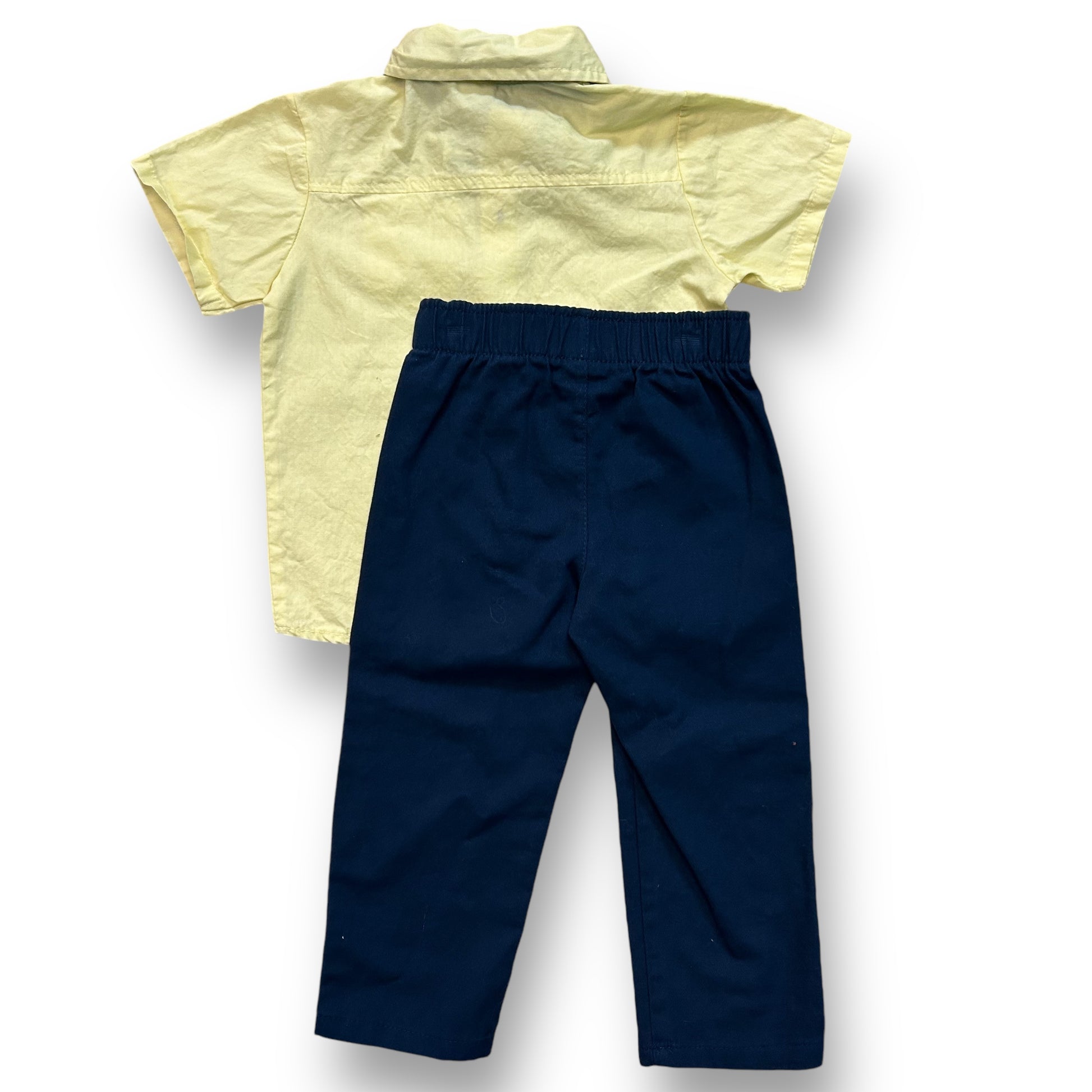 Boys Size 18 Months Navy Pants and Yellow Button Up 3-Pc Outfit & Bow Tie
