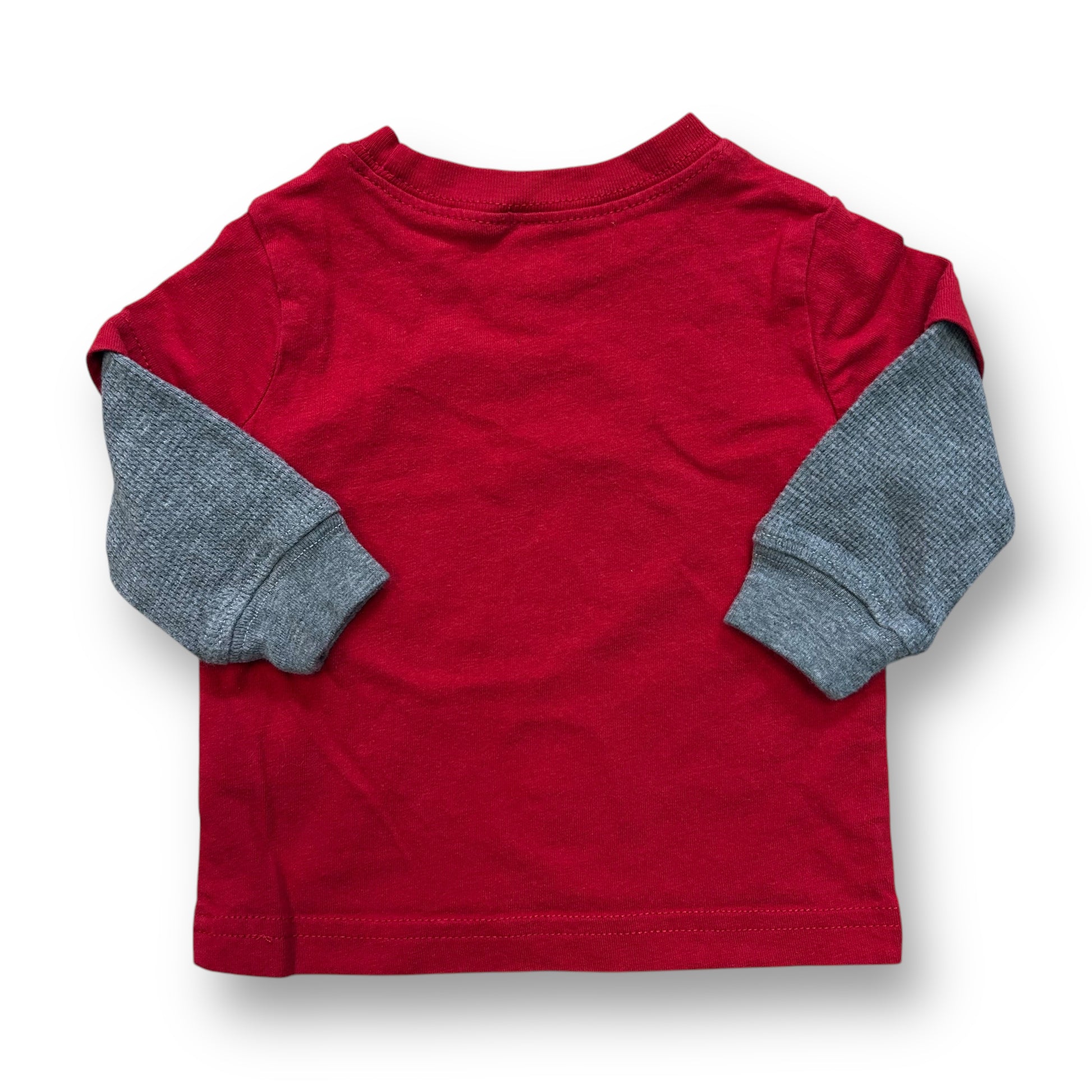Baby Boy Christmas Santa Shirt Size 3 Months Red and Gray Thermal Sleeve Top