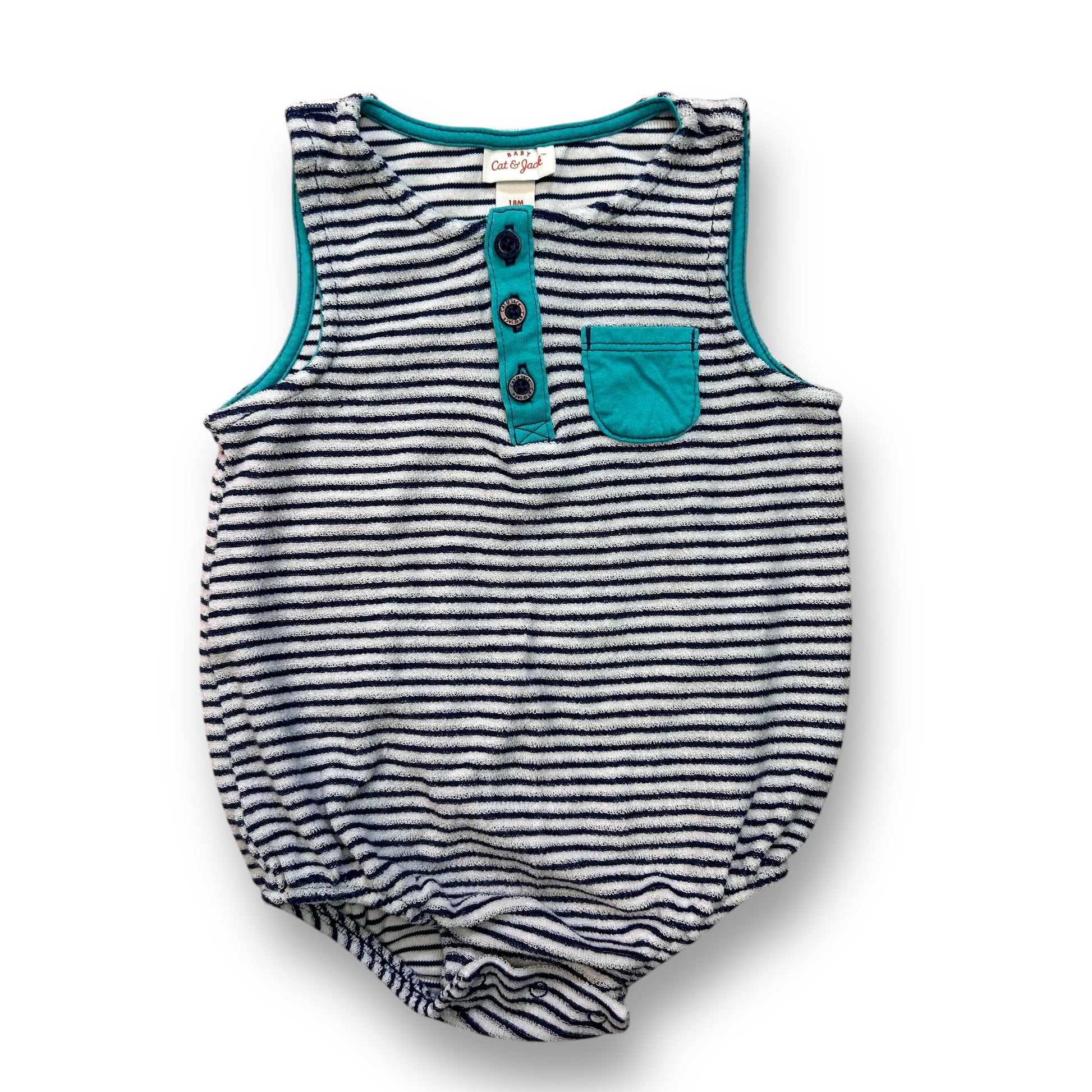 Cat & Jack Boys Size 18 Months Striped One-Piece Terry Button Top Romper