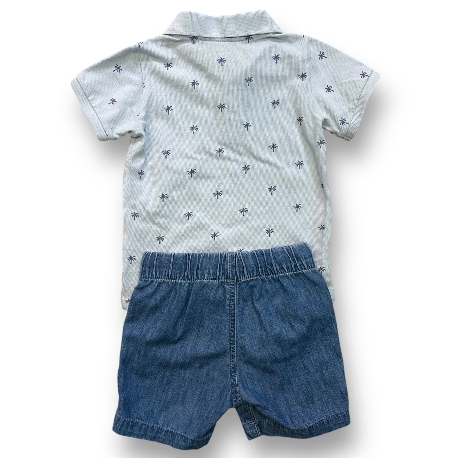 H&M Kids Size 18 Months Toddler Boy Outfit Baby Blue Polo and Denim Shorts Set