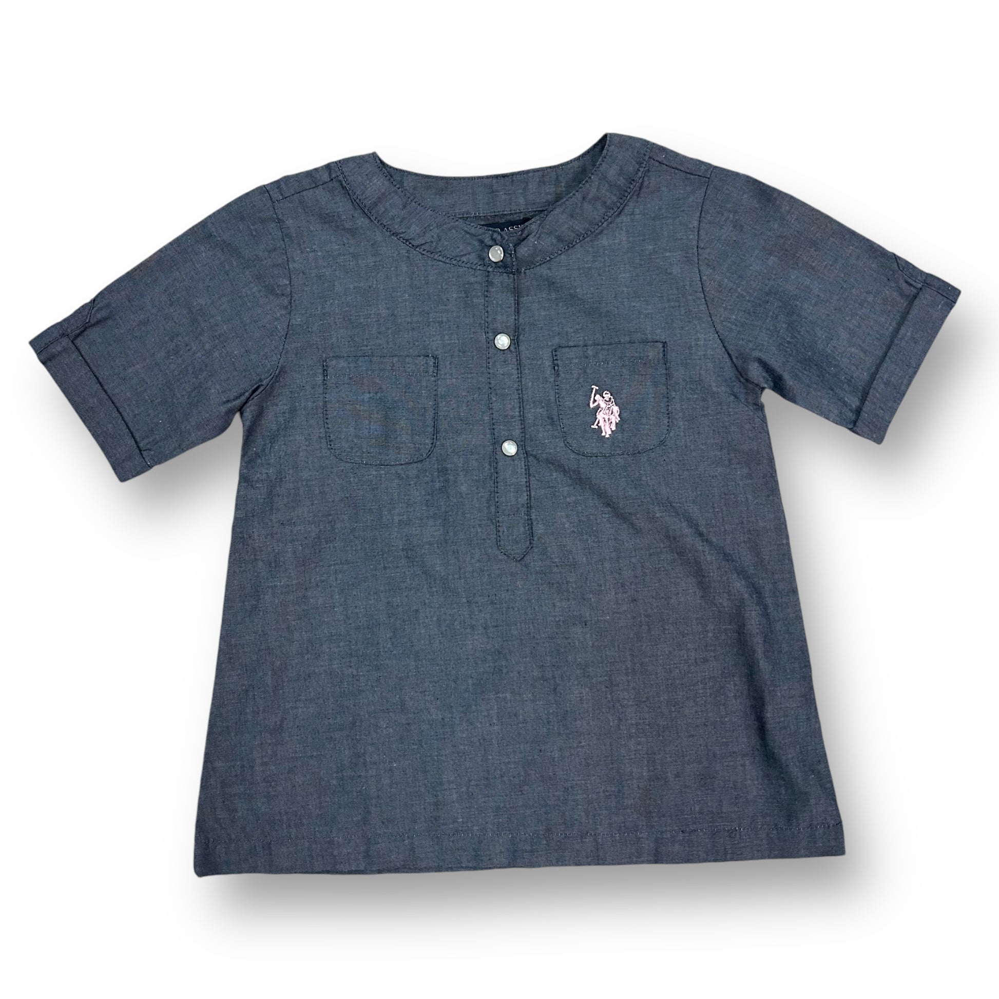 US Polo Assn 2T Girls Blue Denim Tunic Cotton Henley Blouse with Pockets