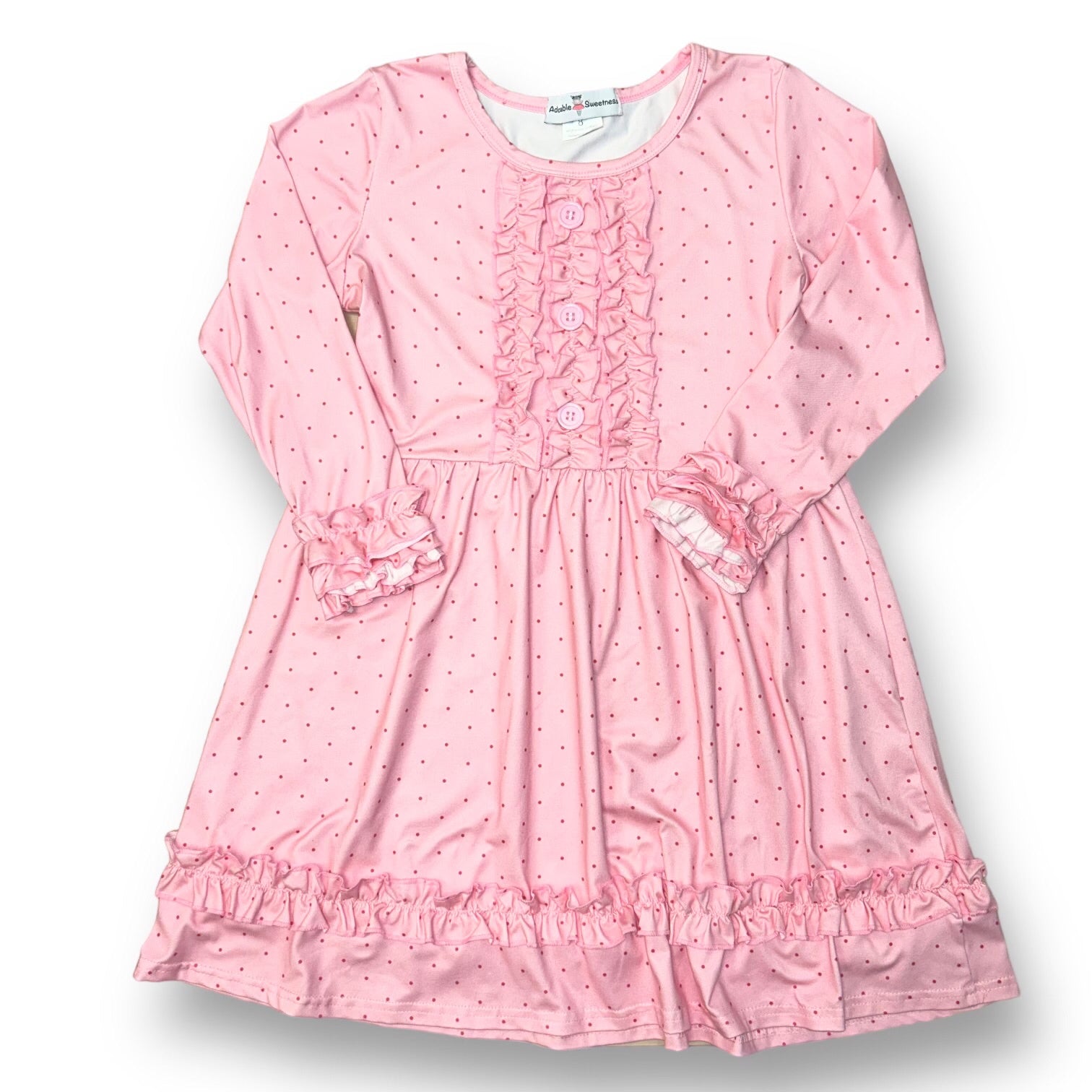 Adorable Sweetness Girls Size 8 Pink Long Sleeve Dress with Ruffles & Buttons