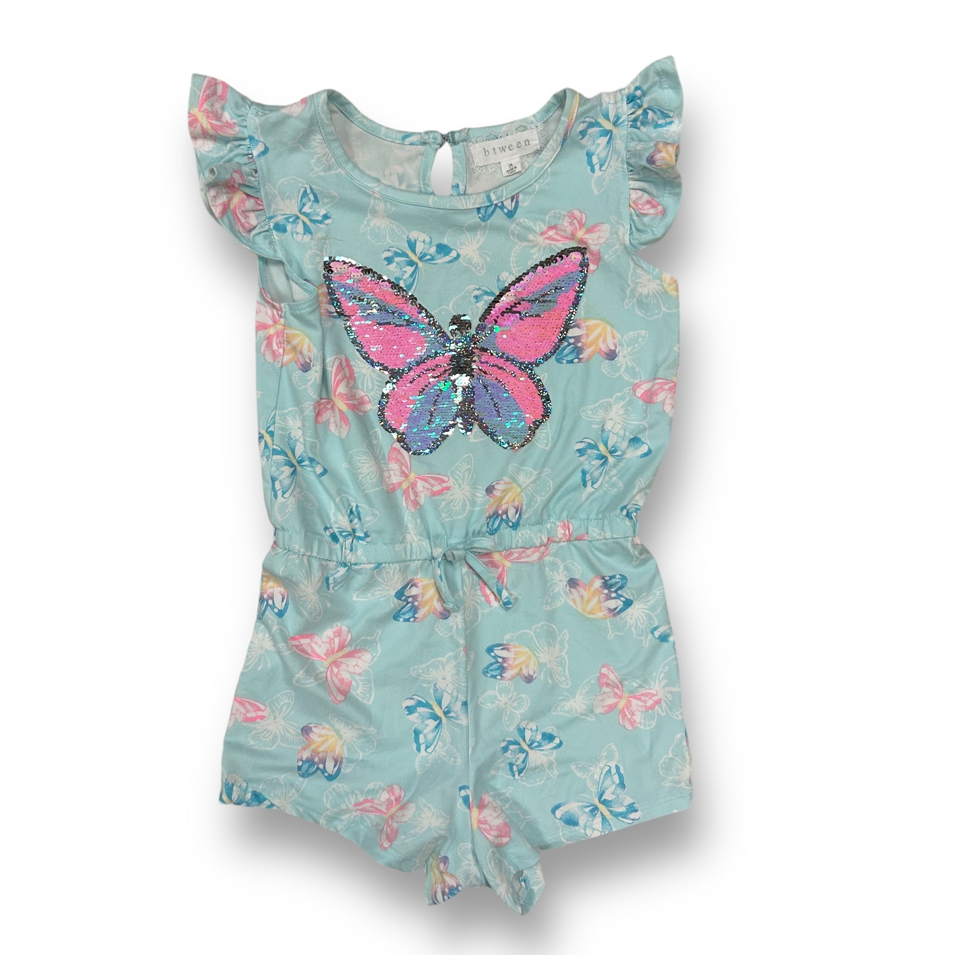 Btween Girls Size 6 Romper Aqua Blue Butterfly Sequin Flutter Sleeve One Piece
