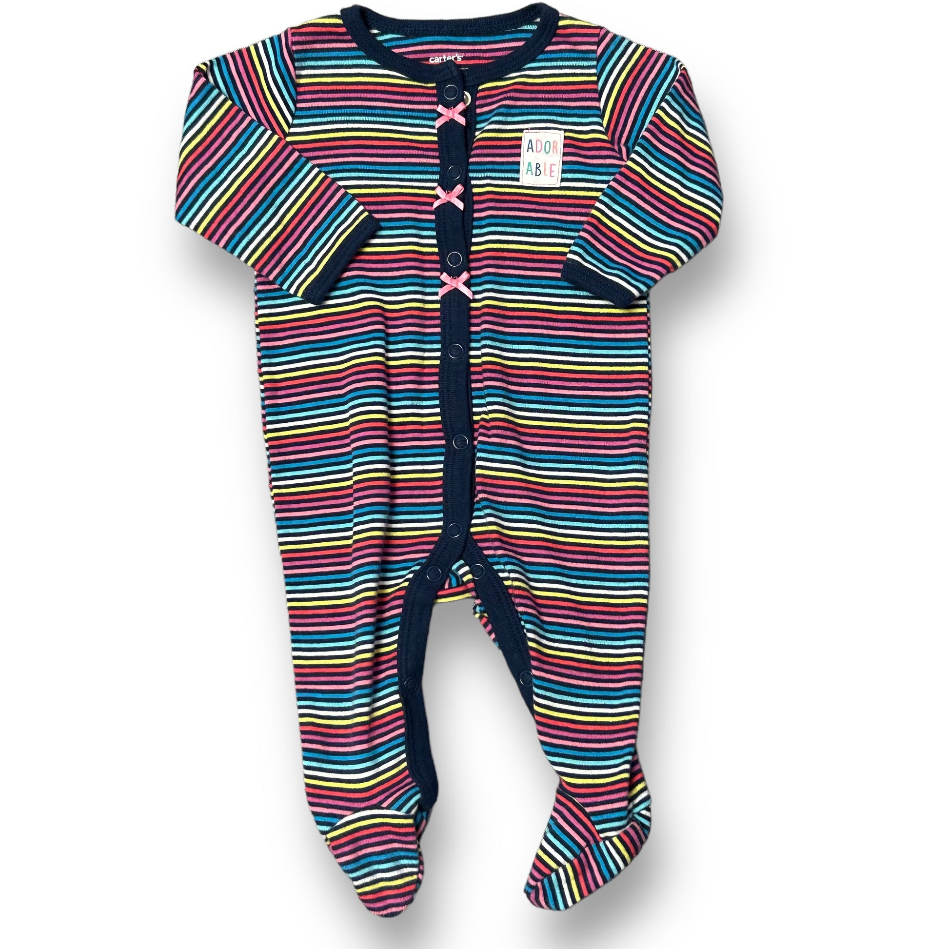 Baby Girl Carter's 3 Months One-Piece Rainbow Striped Snap Footie Pajamas