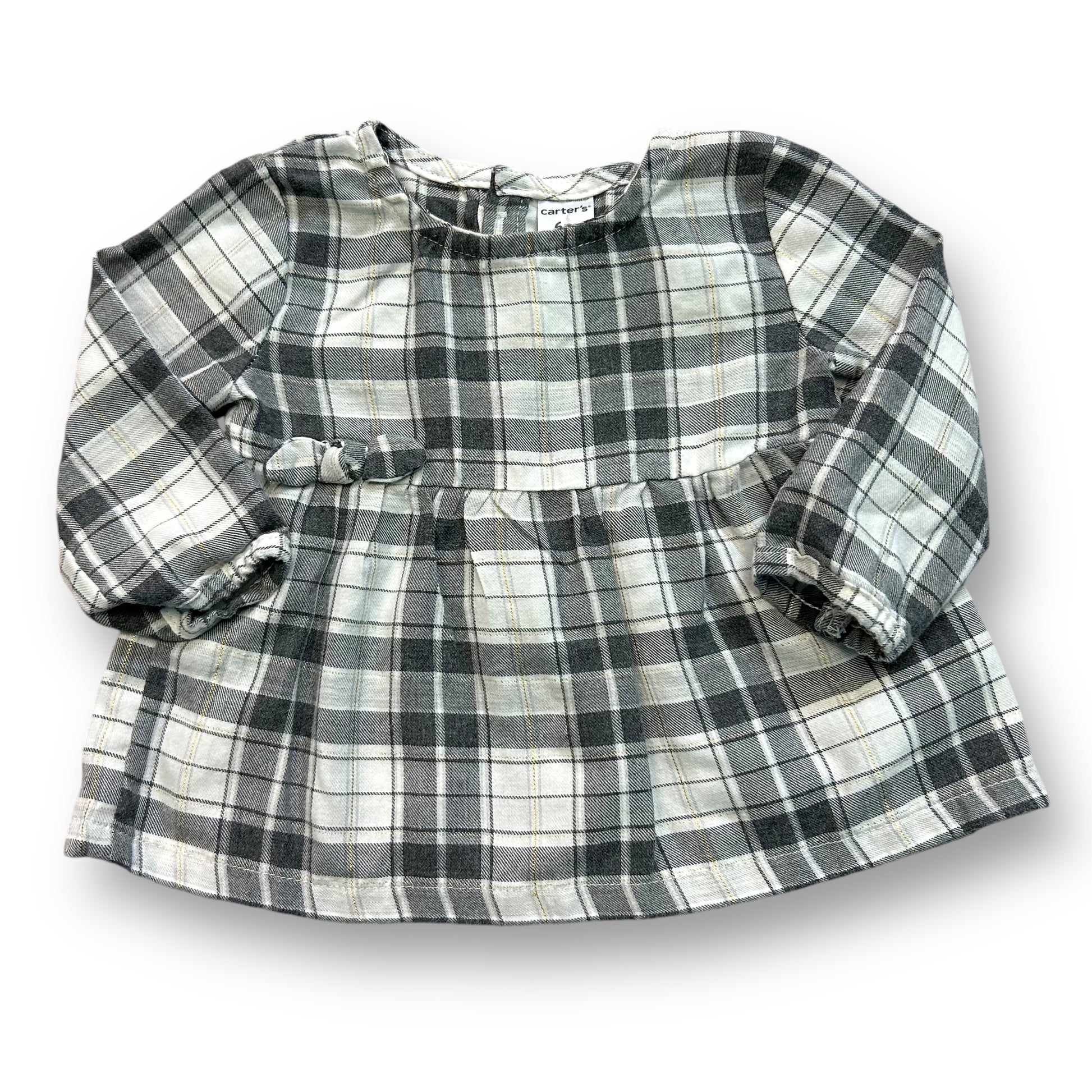 Girls Carter's Size 6 Months Gray & White Plaid Flannel Long Sleeve Dress