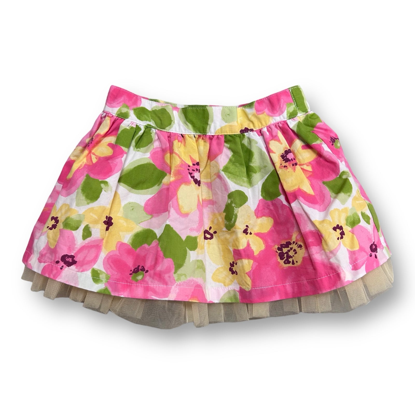 Gymboree Girls Size 2T Pink Green & Yellow Floral Print Tulle Lined Skirt
