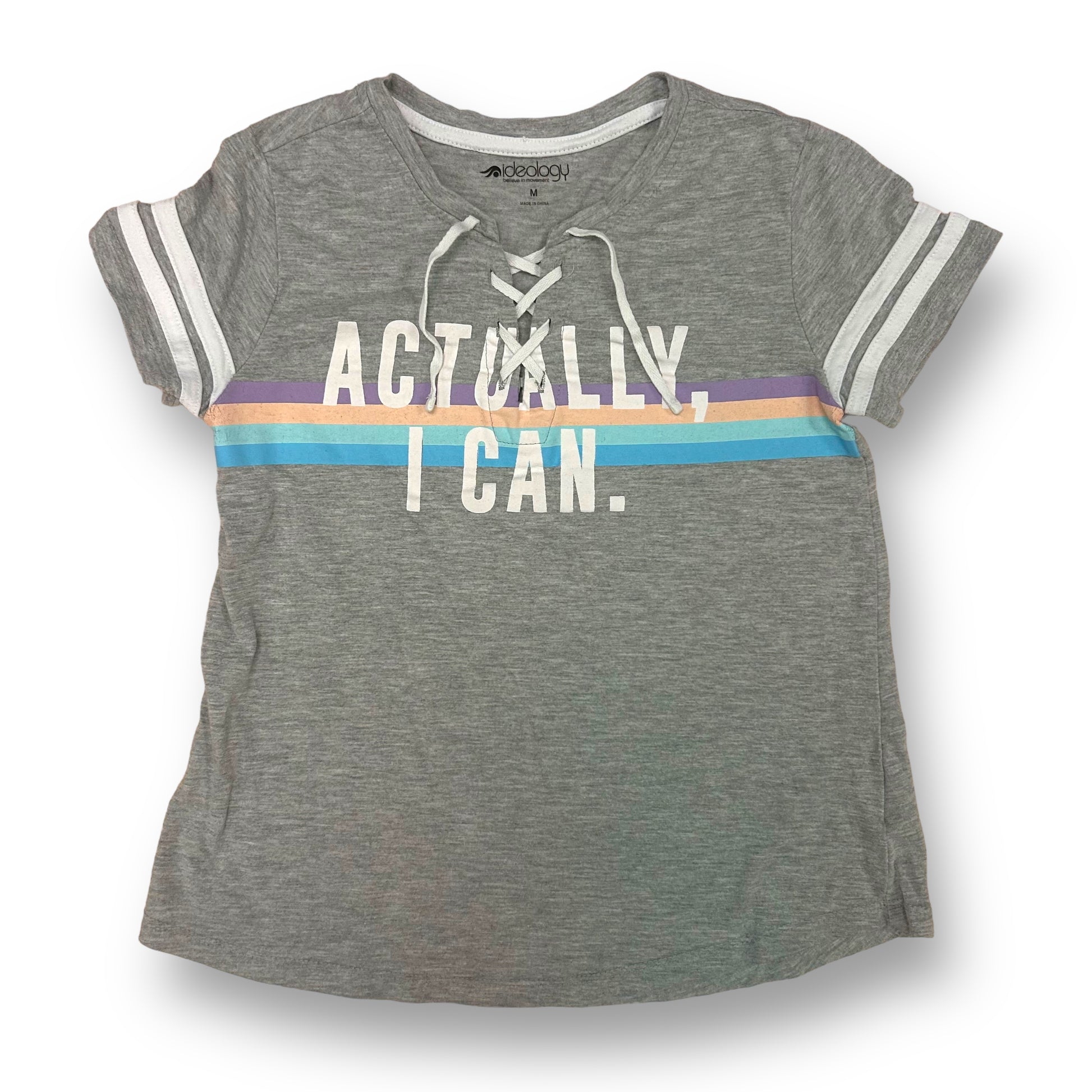 Ideology Girls Size 10/12 Youth M Gray Tie-Front Short Sleeve Activewear Shirt