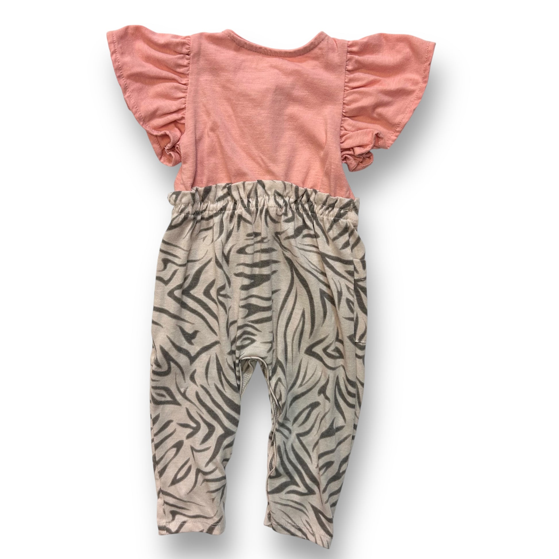 Jessica Simpson Girls Romper Size 6-9 Months Pink and Gray Ruffled Jumpsuit
