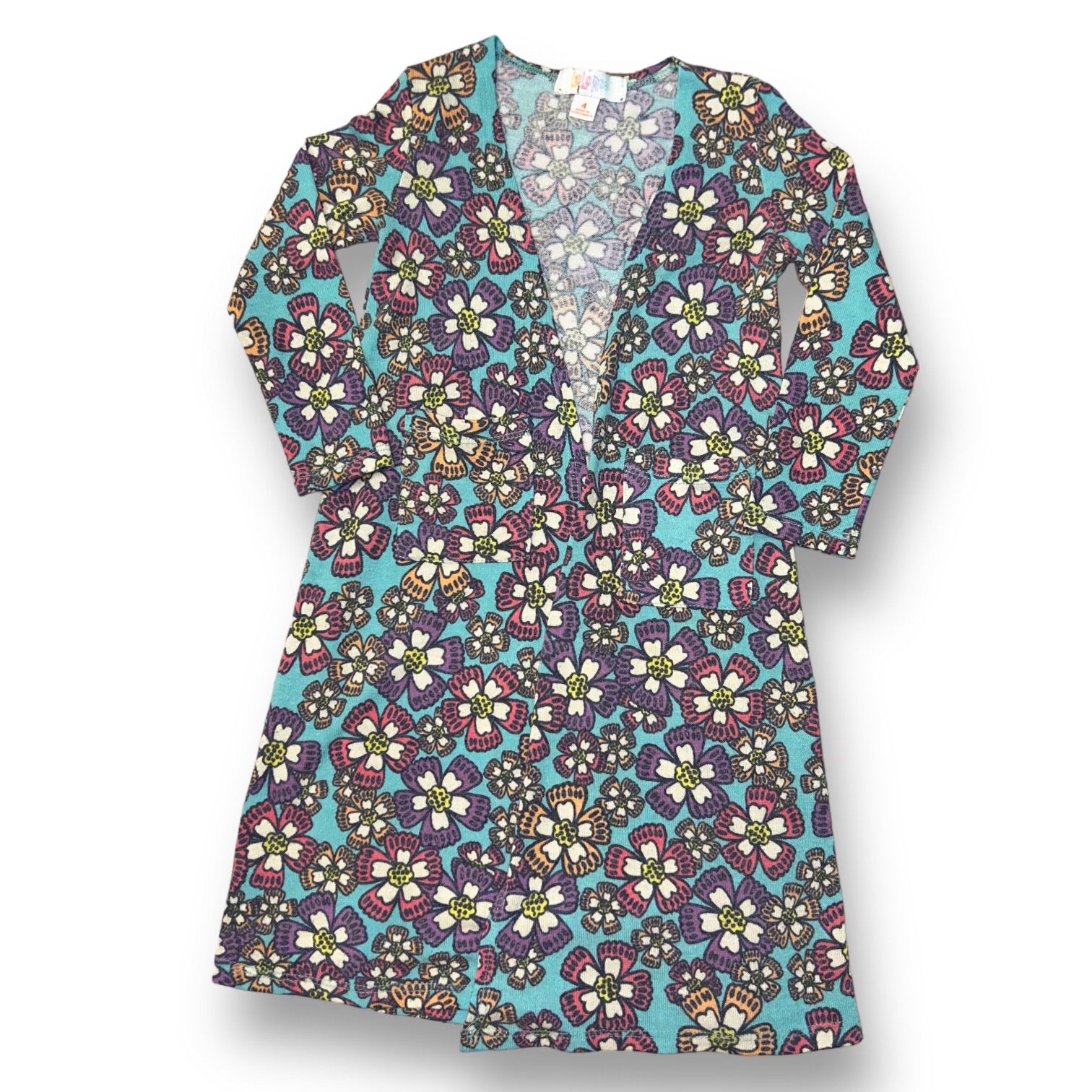 Girls Size 4 Sweater Blue Pink Purple Colorful Flowers Full Length Maxi Cardigan