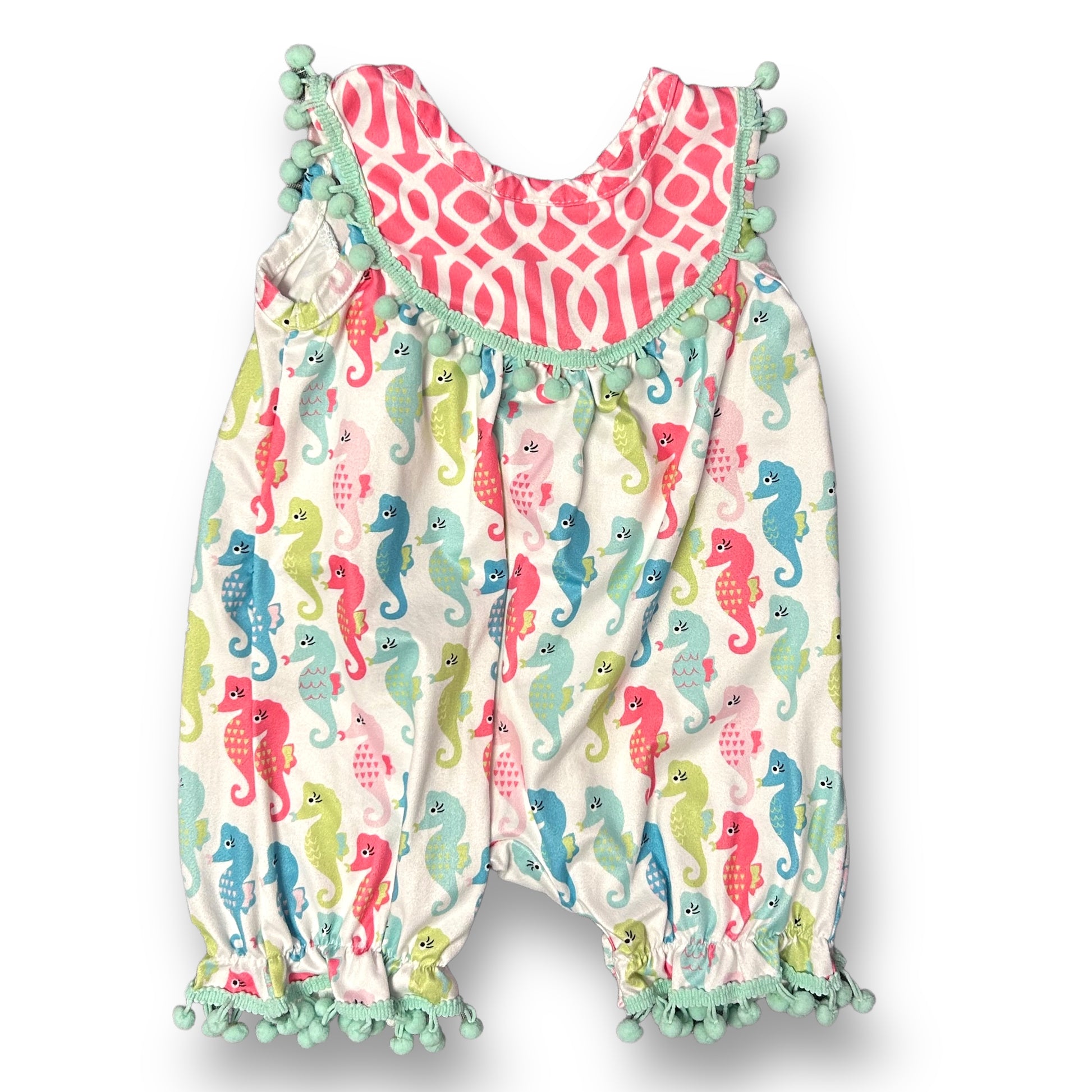 Baby Girl 6-12 Months One Piece Sea Horse Print Pom Collar Sleeveless Romper