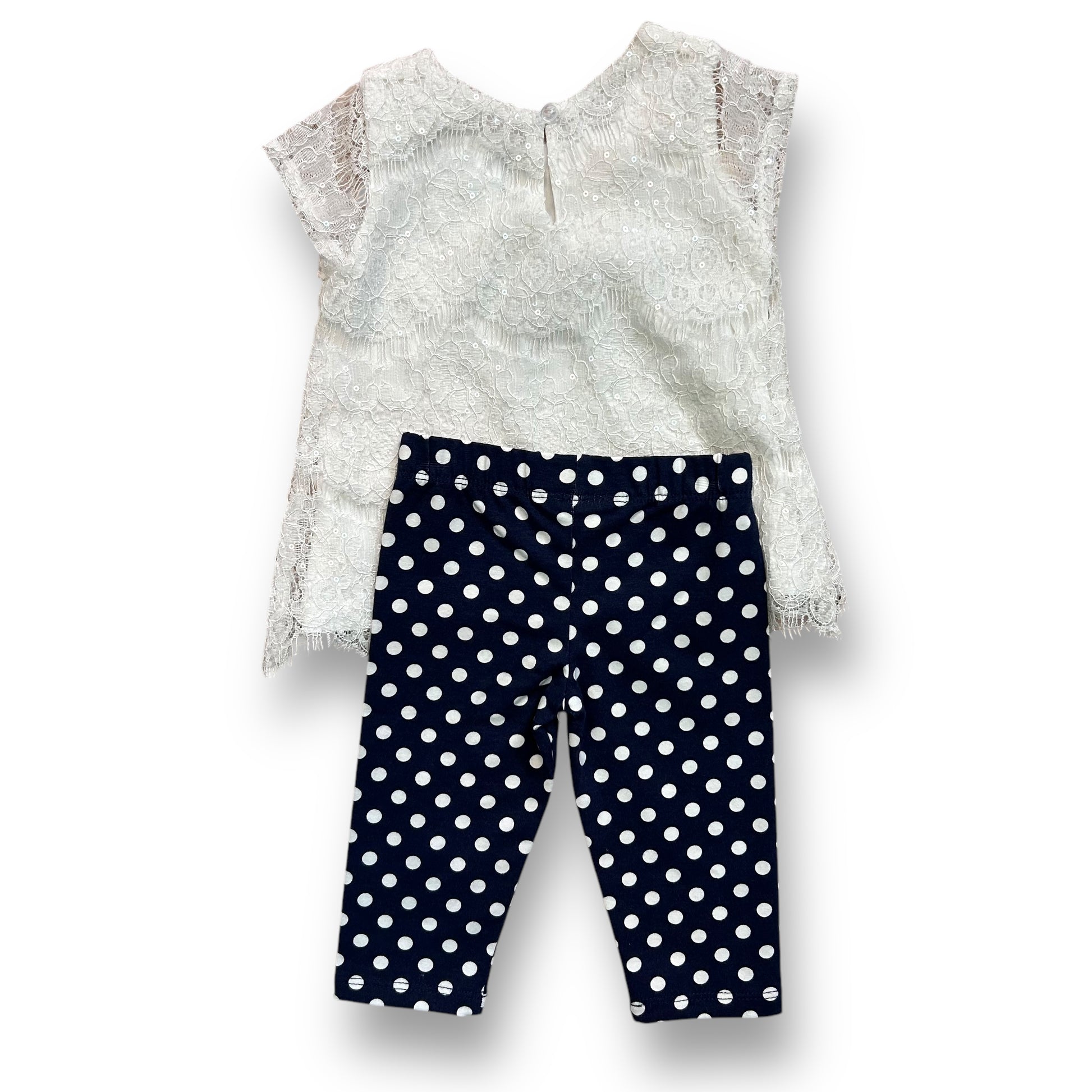 Baby Girl Outfit Size 6-9 Months White Shimmer Lace Blouse & Navy Leggings