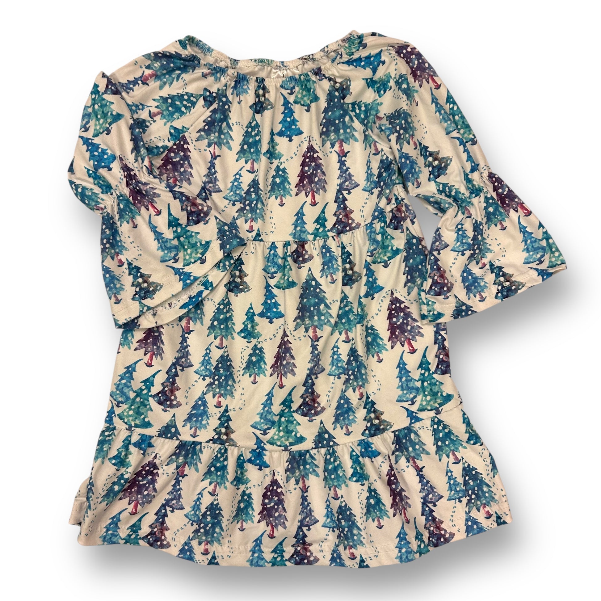 Girls Size 4 Christmas Tree Print Ruffle Sleeve Soft Knit Boutique Holiday Dress