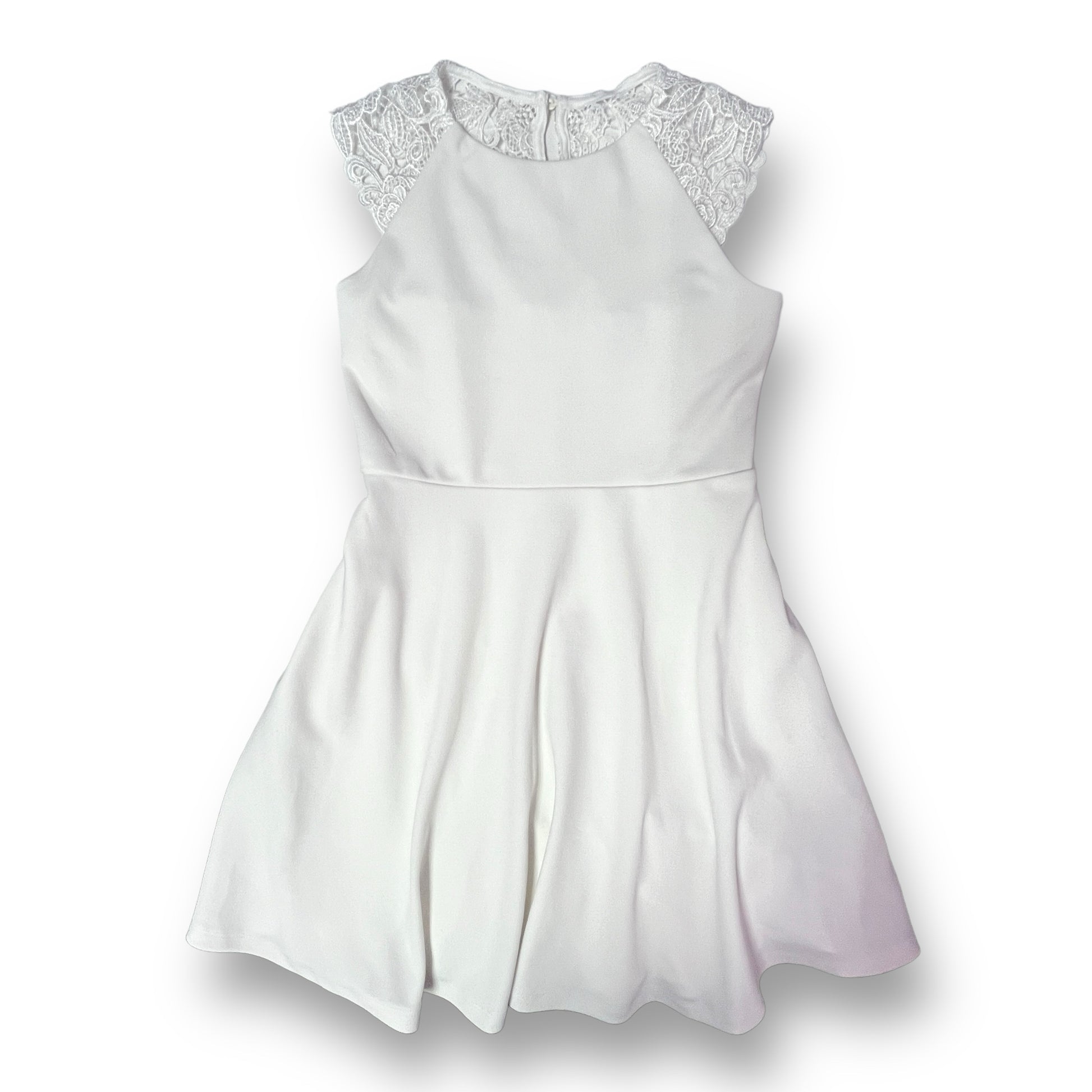 Youth Girls Size 12 White Sleeveless Dress with Lace Accents and Zippered Back