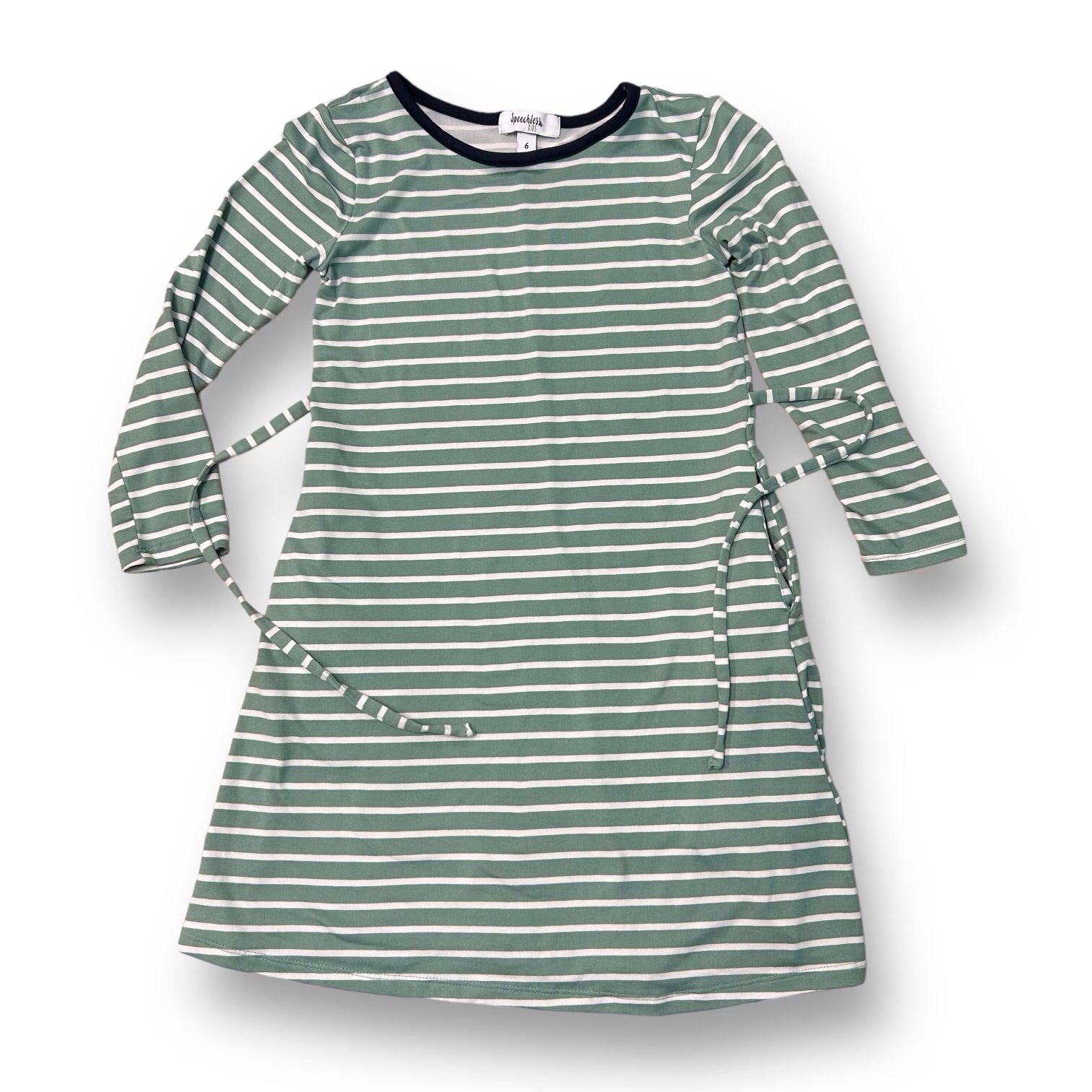 Speechless Girls Size 6 Sage Green Striped Soft Knit Tie-Back Long Sleeve Dress