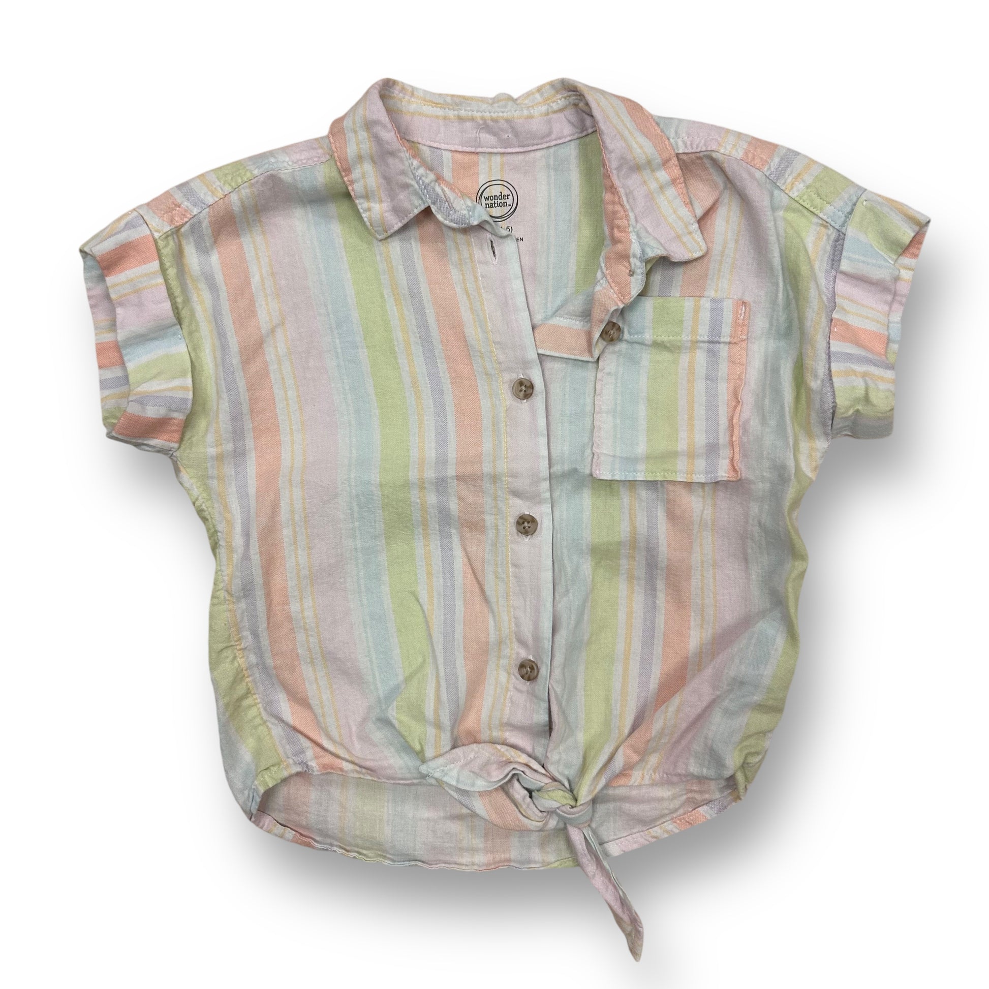 Girls Size 4/5 Pastel Tie-Front Short Sleeve Button Up Blouse with Pocket