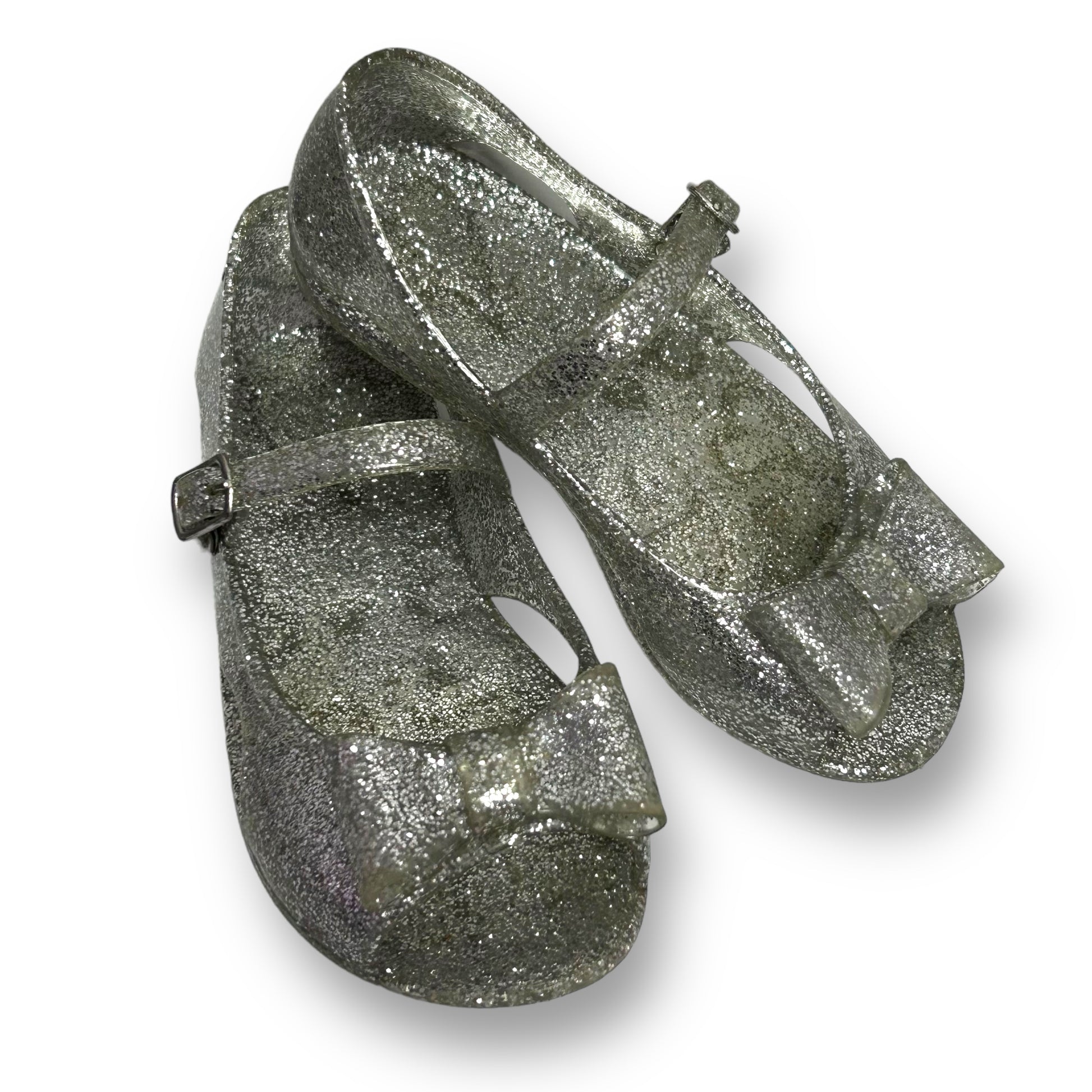 Toddler Girls Size 7 Jellies Sandals Silver Sparkle Easy-On Shoes